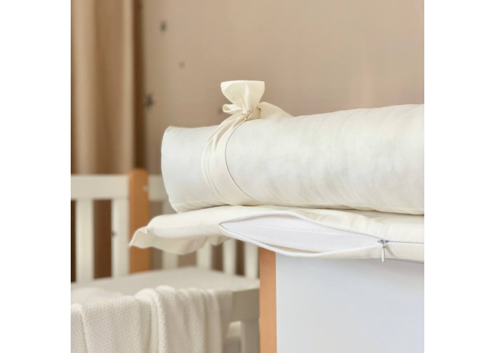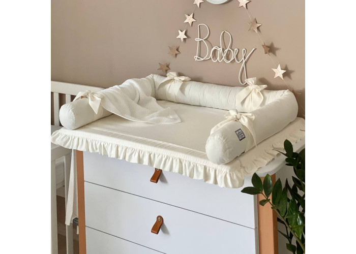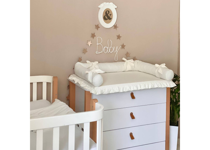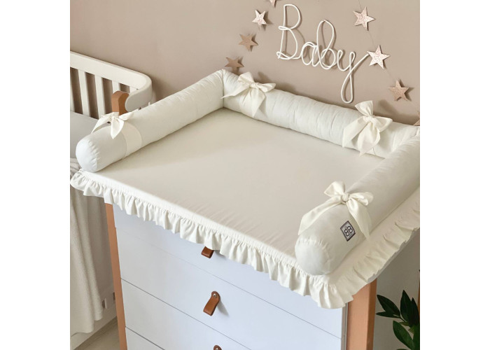 Пеленальний матрацик від ТМ "BBchic" з м'якими обмежувальними бортиками, висотою 15 +/- 2см - призначений для використання на твердій поверхні. Довжина матрацика - 60 +/- 2см, ширина - 80 +/- 2см. Наповнювач матрацика –піна, пружний, сучасний, модифікований матеріал, який рівномірно розподіляє навантаження, завдяки чому малюк почувається затишно та комфортно. Пеленальний матрацик розбірний. На знімний чохол матрацика одягнене непромокаюче простирадло на гумці. Бічні валики кріпляться до матраца стрічками, їх можна зняти для зручнішого прання.
