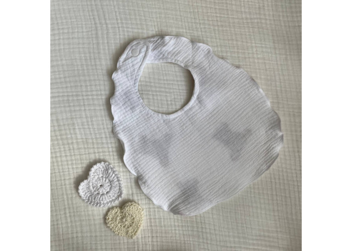 Слинявчик на кнопці являє собою практичний і дихаючий виріб розміром 28х33 см, двошаровий склад, 100% бавовна.