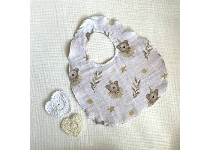 Слинявчик на кнопці являє собою практичний і дихаючий виріб розміром 28х33 см, двошаровий склад, 100% бавовна.