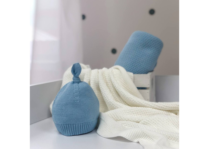 Шапочка вязана з помпоном блакитний