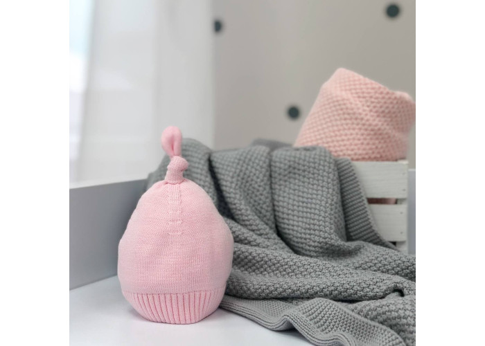 Шапочка вязана з помпоном рожевий