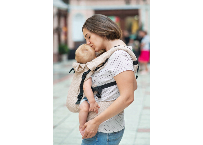 Конструкція ерго рюкзака дозволяє змінювати висоту та ширину спинки, забезпечуючи комфортне, природне положення немовляти на будь-якому етапі розвитку.