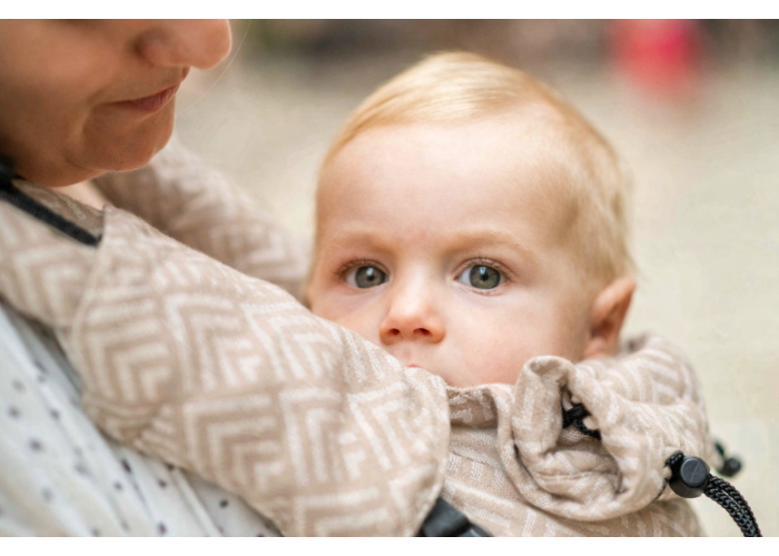 Ми використовуємо жакардову бавовну, розроблену спеціально для слінгів. Вона ніжно обіймає тіло, забезпечує правильну М‑позицію та дає дитині відчуття безпеки.