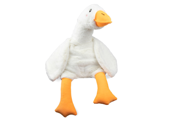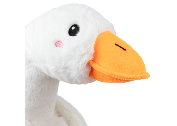 - м'який іграшковий гусак-обіймак, пошитий з ніжного штучного хутра, а всередині - пухнастий гіпоалергенний холлофайбер, що сприятливо позначається на відчуттях малюка при взаємодії;