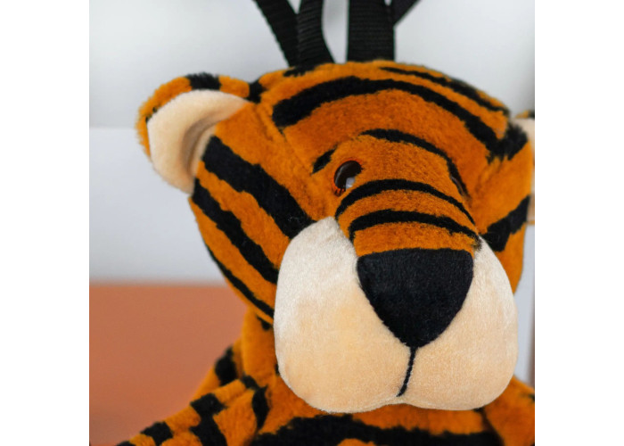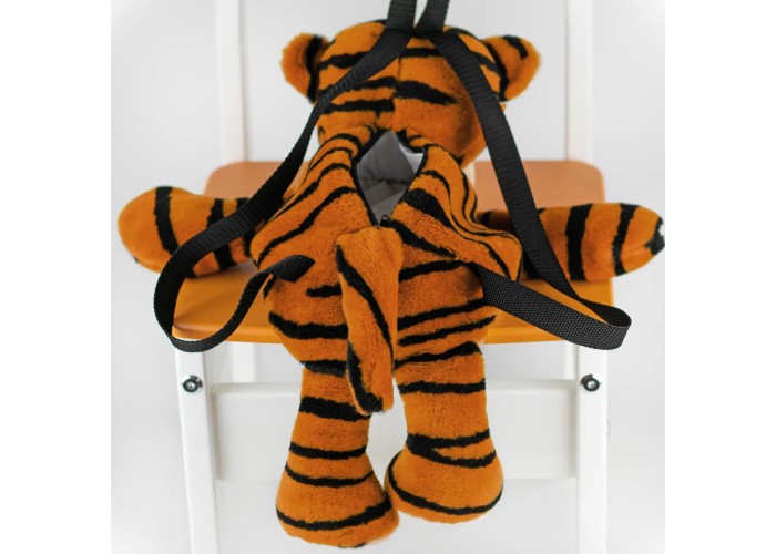 - рюкзак тигр пошитий з м'якого штучного хутра, а всередині - пухнастий гіпоалергенний холлофайбер, що сприятливо позначається на відчуттях малюка при торканні