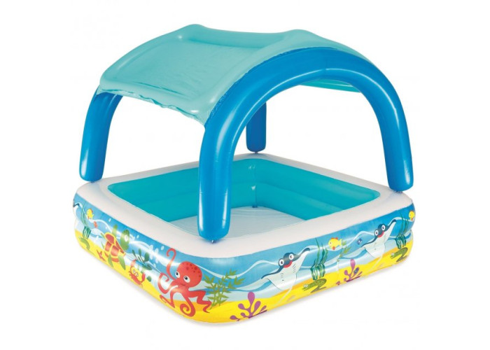 Дитячий надувний басейн 52192 – незамінний атрибут активного відпочинку дитини у спеку. Розроблено модель для дітей старших 3-х років. Дах надійно захистить дитину від потрапляння прямих сонячних променів. Дно не надувне.