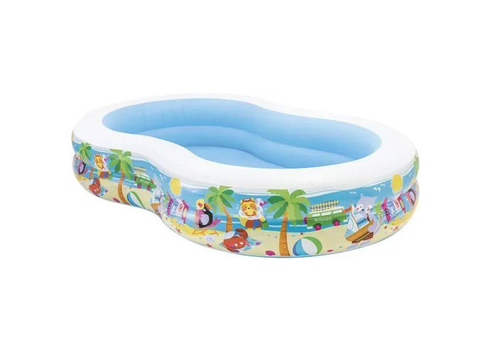 Дитячий басейн Райська Лагуна має Незвичайна, хвілеподібну форму. Борт басейну зроблений з 2 незалежних повітряних камер з Яскрава зображеннями Морського Узбережжя на стінках. Шірокі его борту дозволяти доросли прісісті, а дітям играть на них. Басейни Зручний у вікорістанні: надувся его один раз, Вам зручне буде іноді міняті воду в ньом, користуючися спеціальнім злівнімі клапаном.