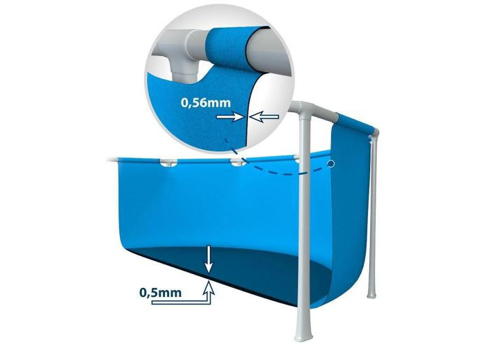 Збірний каркасний басейн Intex 28270 легко і швидко встановлювати. Процес складання басейну до наповнення водою займає 30 хвилин. Надійна, перевірена конструкція. Як і в більшій кількості басейнів Intex, стінки басейну виготовлені за технологією Super-tough, складаються вони з трьох шарів - два шари щільного вінілу і зовнішній шар з поліестеру. Також міцність басейну Rectangular Frame Pool обумовлюється його сталевим каркасом, завдяки якому басейн витримує великі навантаження, в ньому одночасно можуть купатися кілька людей.