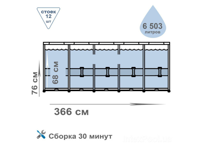 Розміри басейну: 366-76 см.
