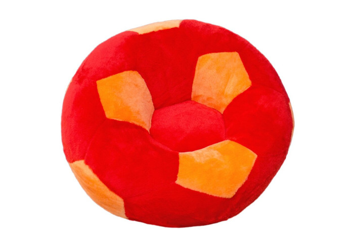 - крісло у вигляді м'яча виготовлено з безпечного та якісного штучного хутра червоно-оранжевого кольору.