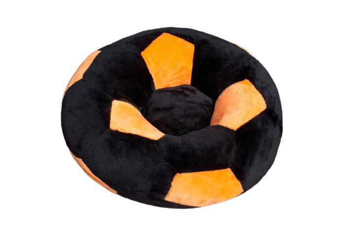 - крісло у вигляді м'яча виготовлено з безпечного та якісного штучного хутра чорно-оранжевого кольору.