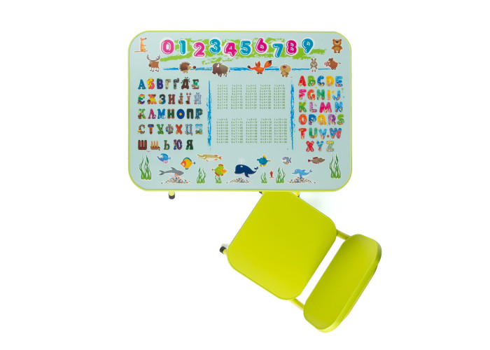- стіл та стільчик оздоблені яскравими розвиваючими малюнками.