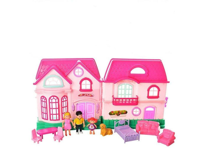 Будиночок створений для захопливих сюжетно-рольових ігор. Іграшка має двоповерхову форму з вікнами, дверима та балконом, а всередині розташовані меблі для облаштування кімнат. У комплект входять три фігурки мешканців і собака, що дає змогу придумувати різні ігрові історії. При натисканні кнопок активуються світлові та звукові ефекти, які роблять гру більш реалістичною та цікавою. Будиночок виготовлений із безпечної пластмаси, має приємні кольори та гладкі краї, зручні для дитячих рук. Модель працює від батарейок і сприяє розвитку уяви, емоційного мислення та комунікативних навичок.