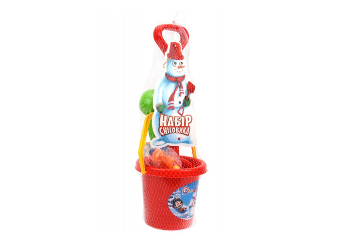 Лопатка- щоб зібрати багато снігу та відерко, що стане відмінним головним убором для майбутнього сніговика. Яскрава морква для носа, різнобарвні фішки для ґудзичків та посмішки. А «оченята», надруковані методом тамподруку, з якими наш герой немов оживає. І сніголіп - для тих, хто просто обожнює ігри сніжками, але не в захваті від мокрих рукавиць і рук.