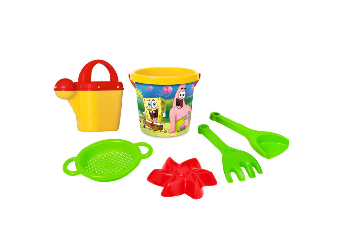 Комплект для ігор у піску, що складається з 6 елементів в класичних кольорах і зображенням героїв із мультфільму «Губка Боб» сподобається всім шанувальникам цього мультфільму, а також просто діткам, які люблять гратись у піску.