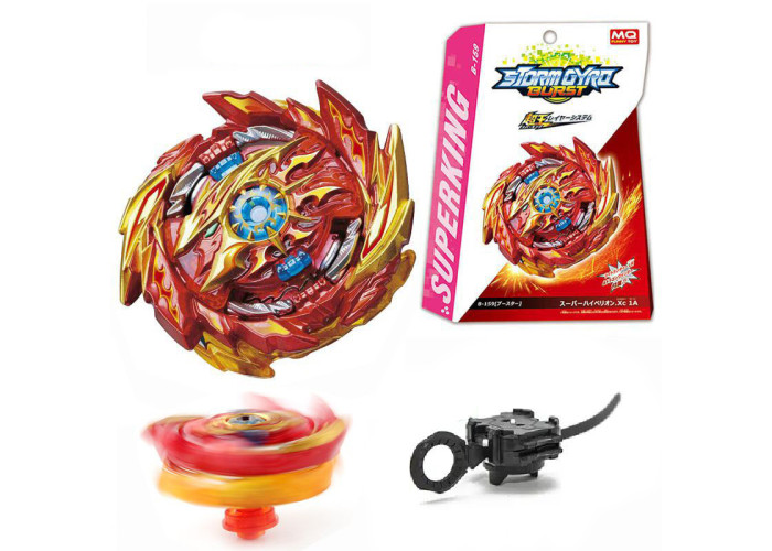 Дзига Бейблейд Супер Гіперіон B-159, з пусковим пристроєм. Бейблейд Супер Гіперіон - перший правобічний бій з лінійки нових дзиг 5 сезону японського аніме Beyblade Burst Sparking Super King. З цим новим персонажем глядачі познайомилися в першій серії нового сезону. Починаючи з нового 5 сезону - застосована нова технологія будови Дзиг - Superking Layer System. Бейблейд Супер Гіперіон все також як і його попередники буде складатися з 4 частин, але вже з урахуванням нових конструкторських особливостей. тип битви: атака; чіп: Hyperion; енергетичний куля: Super.