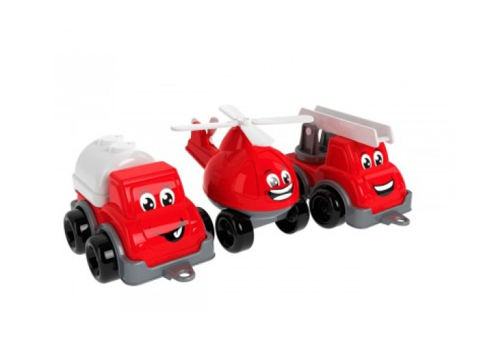 Цей ігровий набір від ТехноК — набір відважних «пожежних». Швидкий вертоліт, поважний цистерновоз та пожежна машина поспішають на допомогу ляльковим героям! Такі сюжетно-рольові ігри дуже корисні для дітей. Вони розвивають уяву, мислення та фантазію. Всі члени пожежної команди наділені емоціями – очі та посмішка нанесені безпечним для дітей методом термодруку. Виготовлені іграшки із якісної пластмаси, без запаху.