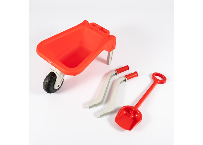 Візок великий дає змогу дитині перевозити необхідні дрібниці, як у межах квартири, так і в пісочниці. Яскраві, насичені кольори привертають увагу дитини, тому гра з тачкою для неї завжди цікава і захоплива. Маючи таку іграшку, дитина може відчути себе будівельником або садівником, перевозячи пісок з пісочниці в будь-який кінець двору. Модель візка виготовлена з якісних матеріалів, має хороші ходові якості. Під час переміщення візку складнощів у малюка не виникає, і він може самостійно її катати по рівній поверхні. Модель виготовляється в різних колірних варіантах.
