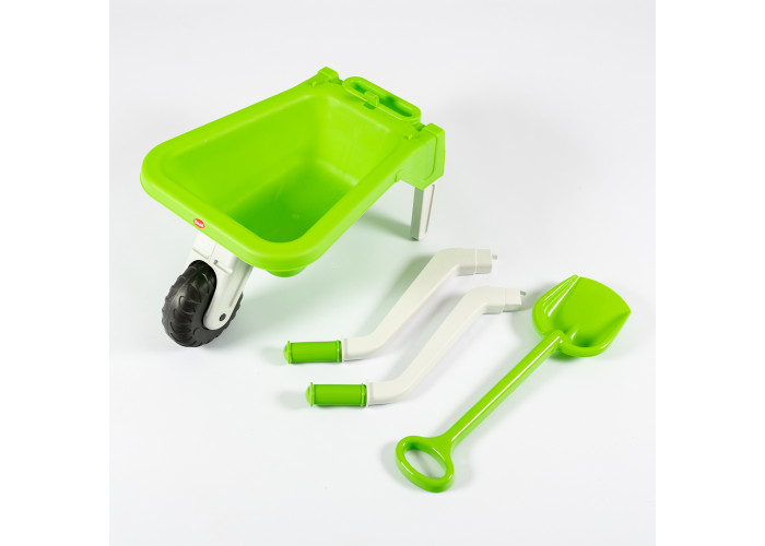 Візок великий дає змогу дитині перевозити необхідні дрібниці, як у межах квартири, так і в пісочниці. Яскраві, насичені кольори привертають увагу дитини, тому гра з тачкою для неї завжди цікава і захоплива. Маючи таку іграшку, дитина може відчути себе будівельником або садівником, перевозячи пісок з пісочниці в будь-який кінець двору. Модель візка виготовлена з якісних матеріалів, має хороші ходові якості. Під час переміщення візку складнощів у малюка не виникає, і він може самостійно її катати по рівній поверхні. Модель виготовляється в різних колірних варіантах.