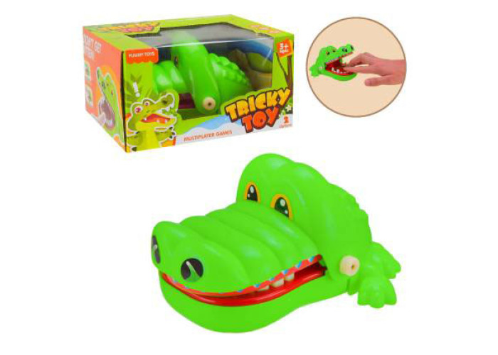 -крокодил з хворими зубами має випадкове спрацювання механізму на будь-якому з представлених у його пащі зубів. Натискаючи на будь-який зуб, ви ніколи не вгадаєте напевно який з них «хворий»;