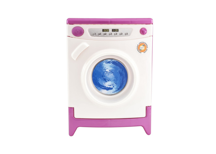 Електрична іграшка (з електричним звуковим сигналом) - пральна машина, довжина - 315 мм, ширина - 215 мм, висота - 435, маса в споживчій упаковці - гофрокороба спеціальному - 1,544 кг або в пакеті з плівки ПВХ - 1,303 кг. Іграшка Пральна машина складається з корпусу задньої, стінки, передніх дверцят і панелі управління, яка встановлюється на корпус вище дверцята. На панелі управління є кнопка звукового сигналу (ліворуч), ручка управління (праворуч) і наклейка - імітаційне табло з програмним управлінням. Ручка управління має кілька фіксованих положень для імітації установки режиму прання. Електричний звуковий сигнал харчується від двох мініатюрних (у вигляді монети) гальванічних елементів живлення по 1,5 вольта DC. Звуковим сигналом можна поінформувати про початок часу для прання. Дверцята пральної машини має фіктивне оглядове вікно, відкривається дверцята за ручку, а всередині пральної машини є перфорована полку для білизни. Пральна машина комплектується двома розгорненнями коробок з картону (пральних засобів). Всі деталі іграшки виготовляються методом лиття під тиском з поліпропілену.