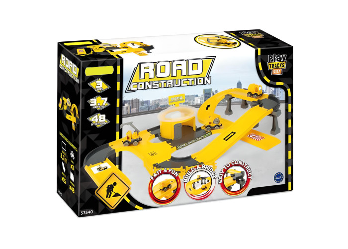 Набір Play Tracks City "Будова" потішить всіх малих шанувальників будівництва. Легка і проста у складанні конструкція, а також кількаповерхова система доріг забезпечать вашій дитині багато годин радості і цікавої гри. До набору входять: система доріг загальною довжиною 3,7 м, станція, 3 тематичні машинки з серії Kid Cars (кран, цистерна і екскаватор), бар’єри, для огородження будівельного майданчика і стовпи для будівництва віадука. Для ще більш цікавої гри до набору додані наклейки і елементи для вирізання. Набір дозволяє придумувати багато сценаріїв ігор, розвиває уяву дітей і спонукає до креативності. Ігри набором покращують руховий розвиток наймолодших, особливо дрібної моторики, їх мануальні здібності, точність рухів і зорово-моторну координацію, навчають логічного мислення і просторової орієнтації. Під час гри дитина знайомиться з принципами дорожнього руху, а також вчиться як безпечно переходити дорогу. Всі елементи виготовлені з високоякісного безпечного і міцного матеріалу, завдяки чому всі частини траси зберігатимуть вигляд і колір протягом багатьох років. Набір упакований в гарну коробку, ідеальну на подарунок.