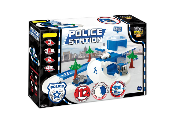 Набір Play Tracks City "Поліція" - це тематичний набір з серії Play Tracks City, який потішить всіх дітей, що мріють стати поліцейськими. Кольорова, легка і проста у складанні конструкція дає змогу компонувати кількарівневі траси загальною довжиною 3,8 м, а двоповерхова станція і 3 машинки з серії Kid Cars (поліцейська машина, автофургон і джип) забезпечать вашій дитині багато радості. До складу комплекту входять також: декорації, наклейки і стовпи для побудови віадука. Набір дозволяє придумувати багато сценаріїв ігор, розвиває уяву дітей і спонукає до креативності. Ігри набором покращують руховий розвиток наймолодших, особливо дрібної моторики, їх мануальні здібності, точність рухів і зорово-моторну координацію, навчають логічного мислення і просторової орієнтації. Під час гри дитина знайомиться з принципами дорожнього руху, а також вчиться як безпечно переходити дорогу. Всі елементи виготовлені з високоякісного безпечного і міцного матеріалу, завдяки чому всі частини траси зберігатимуть вигляд і колір протягом багатьох років. Набір упакований в гарну коробку, ідеальну на подарунок.