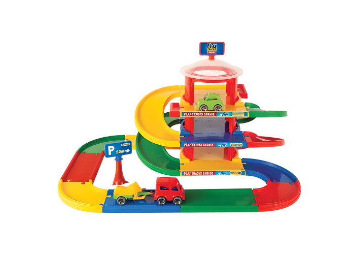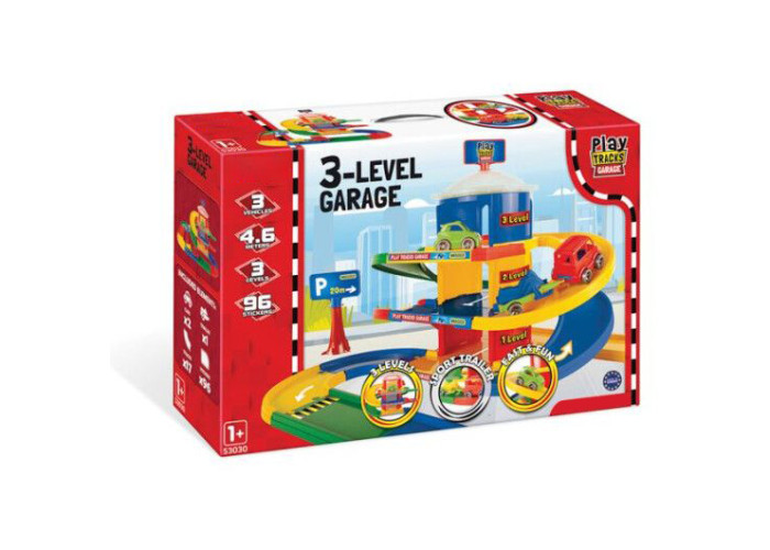 Іграшковий триповерховий паркінг Play Tracks Garage - гараж 3 поверхи - це чудова іграшка для наймолодших автолюбителів.Сучасна, легка і проста в складанні конструкція дозволяє зібрати різні траси і забезпечить вашій дитині багато годин захопливої гри. Різнокольорові елементи створюють багатоповерхову дорожню систему загальною довжиною 4,6 м та гараж на три рівні. У набір входить автомобіль Kid Cars Sport та Kid Cars Sport з причепом, на якому є додаткова машина, декорації та набір наклейок. Набір дозволяє придумати багато ігрових сценаріїв, стимулює уяву дітей та надихає на творче мислення. Гра з гаражем покращують руховий розвиток наймолодших, особливо дрібної моторики, їх мануальні здібності, точність рухів і зорово-моторну координацію, навчають логічного мислення і просторової орієнтації. Під час гри дитина знайомиться з принципами дорожнього руху, а також вчиться як безпечно переходити дорогу. Всі елементи виготовлені з високоякісного безпечного для дітей і міцного матеріалу, завдяки чому всі частини траси зберігають вигляд і колір протягом багатьох років. Набір упакований в гарну коробку, ідеальну на подарунок.