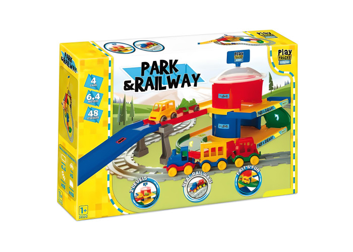 Іграшкови паркінг Play Tracks "Вокзал" – це велике містечко, яке сподобається кожному маленькому любителю машин і потягів. З елементів набору можна скласти залізничну і автомобільну дороги, загальною довжиною 6,4 м. До складу також входять 4 транспортні засоби, 48 наклейок і елементів для вирізання, а також стовпи, які дозволять скласти віадук. Перевагою цього містечка є різноманітність елементів, завдяки яким гра стає дуже цікавою та захопливою. Набір дозволяє придумувати багато сценаріїв ігор, розвиває уяву дітей і спонукає до креативності. Ігри набором покращують руховий розвиток наймолодших, особливо дрібної моторики, їх мануальні здібності, точність рухів і зорово-моторну координацію, навчають логічного мислення і просторової орієнтації. Під час гри дитина знайомиться з принципами дорожнього руху, а також вчиться як безпечно переходити дорогу. Всі елементи виготовлені з високоякісного безпечного для дітей і міцного матеріалу, завдяки чому всі частини траси зберігають вигляд і колір протягом багатьох років. Набір упакований в гарну коробку, ідеальну на подарунок.