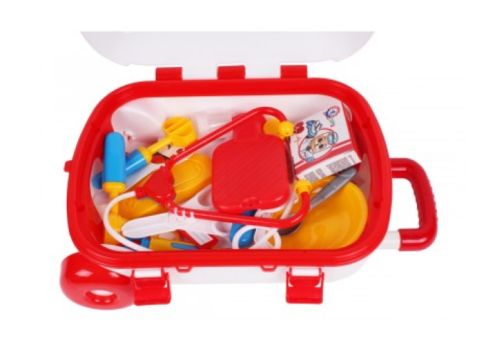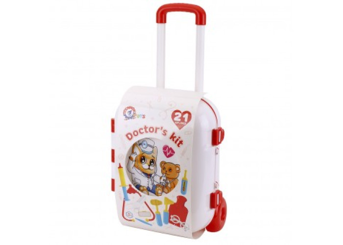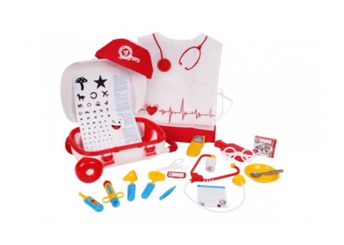 Вміст валізи також вражає: іграшкові інструменти лікаря, банки з «таблетками», таблиця для перевірки зору та навіть іграшковий мобільний телефон! І це ще не весь перелік іграшок, що входять до набору. Купуйте чарівну медичну валізу, відкривайте її і знаходите всередині безліч цікавого та корисного для захоплюючих ігор у «лікарі».
