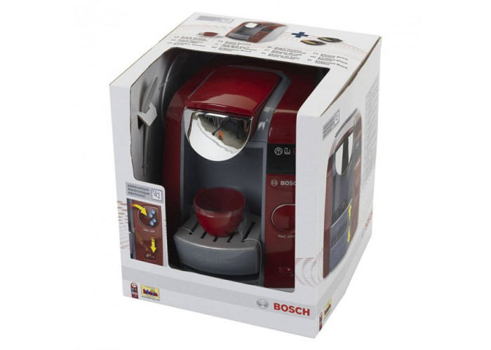 Дитяча кавоварка Klein Bosch Tassimo оживає із батарейками — видає звуки, виливає приготований напій у чашечку. Яскраво-червоного кольору, точно копіює дорослу кавоварку від Bosch. Розвиває навички поводження з кухонним приладдям.