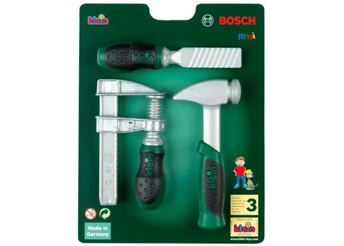 Іграшковий набір інструментів Klein Bosch – комплект інструментів, які виглядають як оригінальні інструменти Klein Bosch. Вони подарують дитині незабутні відчуття від пізнавальних ігор і малюк зможе відчути себе дорослим майстром. Виготовлені з якісного пластика і безпечні для дітей від 3-х років.