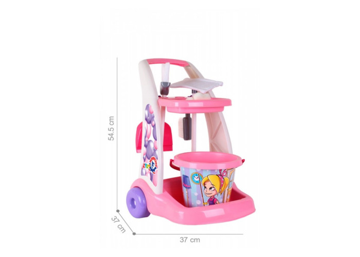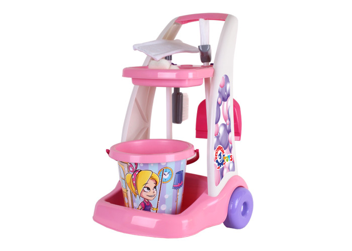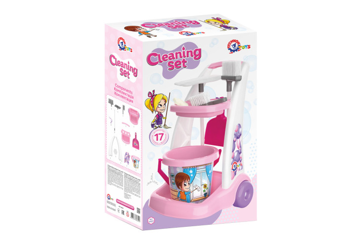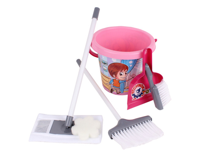 У «Наборі для прибирання ТехноК» є яскраве відерко з барвистою наліпкою, виконаною за допомогою технології IML, швабра, мітла, щіточка та совок. Всі елементи можна розмістити на возику та перевозити з собою. На нижній поличці візка є спеціальне місце для відерка, а на верхній поличці з трьома гачками зручно розмістити дрібні елементи набору. З таким возиком все необхідне завжди буде під рукою. Візком можна користуватися як вдома так і на ігровій площадці. А як використати візок на вулиці - малюк з друзями вирішить сам, адже перевезти на цьому візку можна багато.