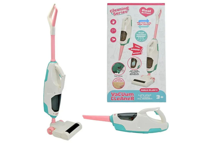 Дитячий ручний пилосос імітує сучасну побутову техніку і має функціонал, що робить процес збирання максимально правдоподібним.