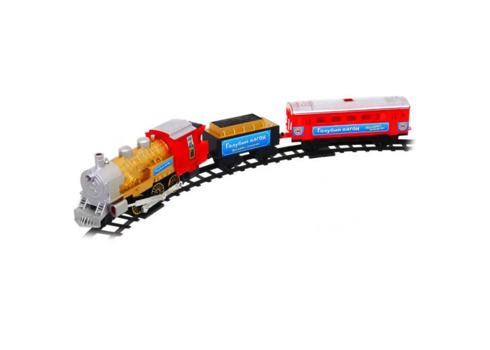 Реалістична дитяча залізниця довжиною шляху 282 см з імітацією справжнього диму, а також світловими і звуковими ефектами. В ігровий набір входять: високодеталізованих локомотив, пасажирський вагон і промисловий вагон з вугіллям. Электропитание іграшки здійснюється від двох батарейок типу D і двох батарейок типу ААА (у комплект постачання не входять).