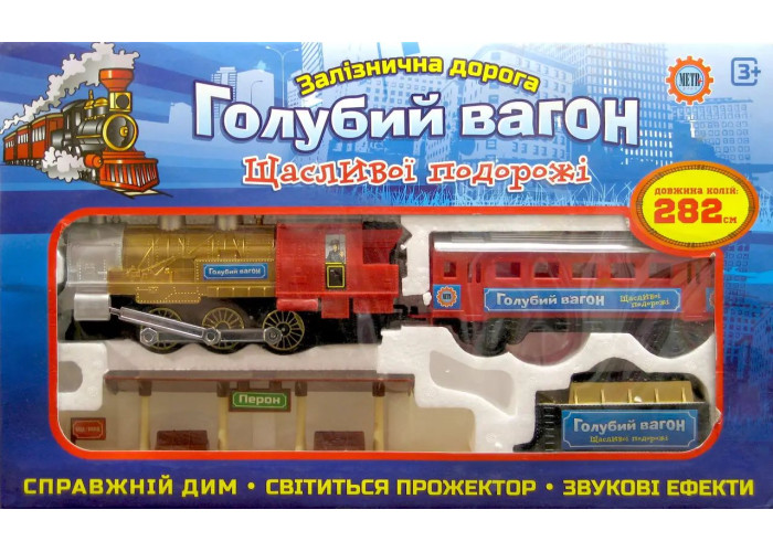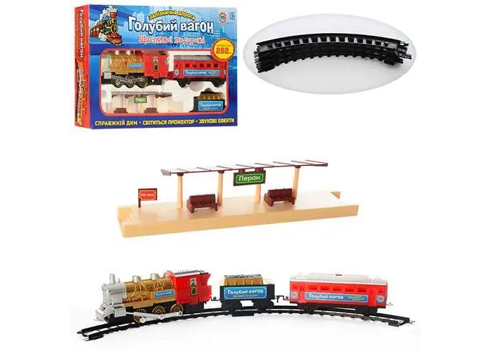 Реалістична дитяча залізниця довжиною шляху 282 см з імітацією справжнього диму, а також світловими і звуковими ефектами. В ігровий набір входять: високодеталізованих локомотив, пасажирський вагон і промисловий вагон з вугіллям. Электропитание іграшки здійснюється від двох батарейок типу D і двох батарейок типу ААА (у комплект постачання не входять).