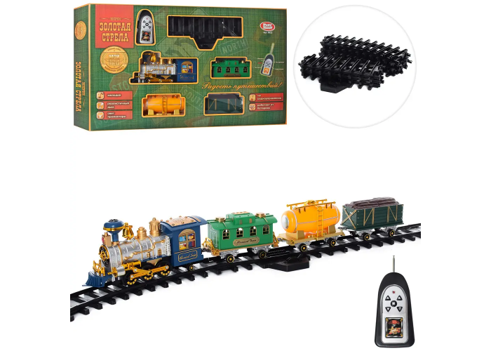 У наборі ви знайдете локомотив, цистерну, вантажний та пасажирський вагони, 22 сегментів дороги (прямих та загнутих), а також пульт для керування всім цим дивом.