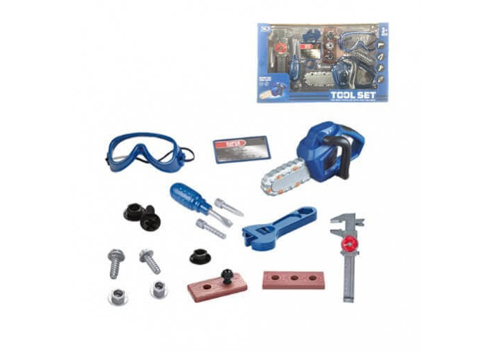 Ігровий набір «Набір Інструментів» - супер-подарунок хлопчикам на будь-яке свято Усі хлопчики хочуть бути схожими на своїх тат, багато хто в захваті від інструментів, якими майстерно володіють дорослі чоловіки. Однак далеко не все можна брати до рук дітям, оскільки це небезпечно для їхнього здоров'я. Саме тому створили найцікавіший набір для хлопчаків, який містить все необхідне: викрутка зі знімними насадками, бензопила, розвідний та гайковий ключі, плоскогубці, шурупи та гайки, пилка, респіратор, захисні окуляри, сполучні пластини. Складові набору видають світлові та звукові ефекти, включаючись про дві батарейки типу АА (у комплект не входять).