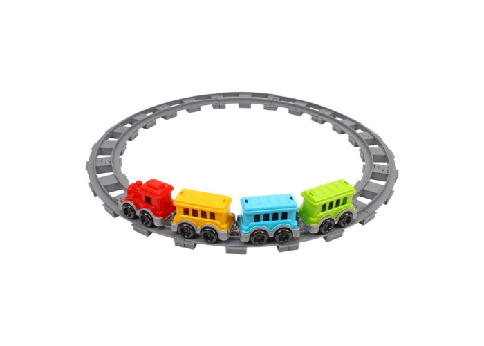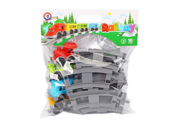 У наборі 16 елементів: локомотив, 3 яскравих вагончики та 12 елементів залізниці, які легко з'єднуються, як пазли.