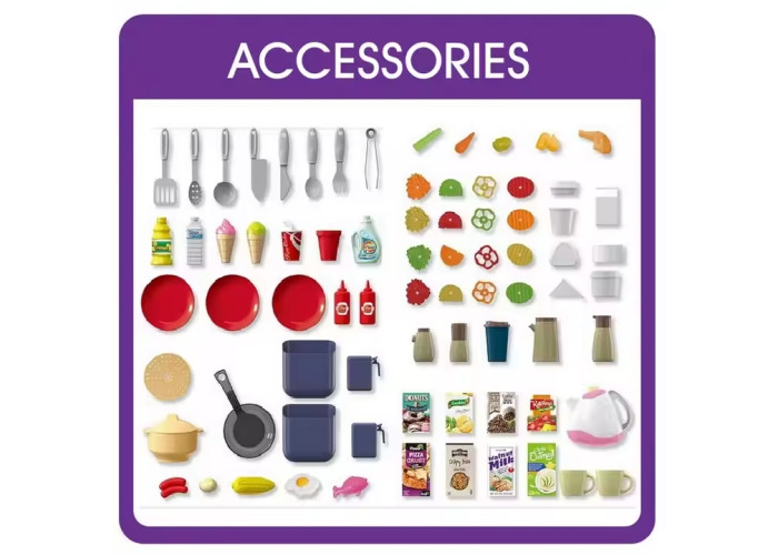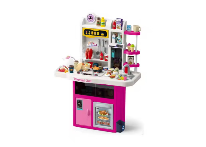 Ви тільки подивіться на це! Перед вами справжня мрія юної господині – іграшкова кухня, що має підсвічування-імітацію вогню, парогенератор, відтворює звуки приготування та налічує 93 кухонних аксесуарів!