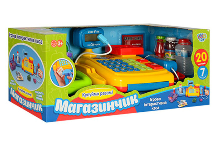 Касовий апарат ідеально підходить для сюжетно-рольової гри. Іграшка дозволить малюку цікаво провести час за грою до справжнього магазину. У касовому апараті є справжній калькулятор і термінал для оплати чековою карткою, сканер продуктів зі звуком, вбудовані ваги, на табло каси висвічується необхідна сума. Дитина розплачуватиметься купюрами та монетами, що прискорить вивчення цифр та підрахунку. Звукові та світлові ефекти посилюють реалістичність гри. Завдяки такому набору дитина вивчить назви продуктів, розвиватиме здатність позиціонувати себе в колективі, уміння вести тематичні діалоги та виконувати прохання. Гра навчить приймати рішення та відповідально розпоряджатися фінансами.