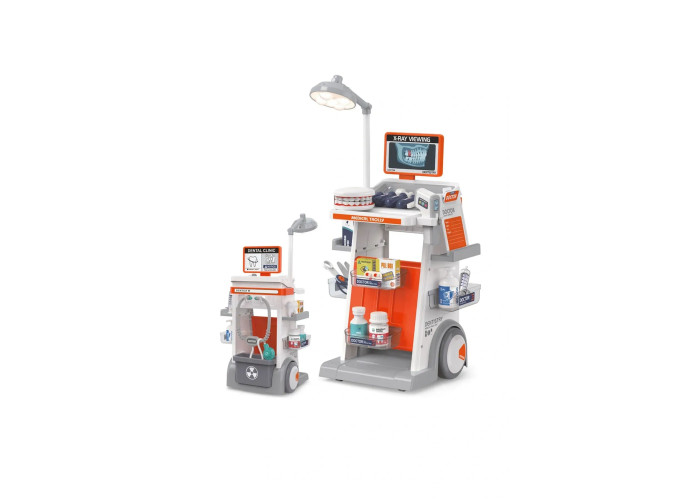 Дитячий ігровий набір лікаря стоматологічний кабінет Medical Trolley включає в себе 26 предметів, які імітують інструменти лікаря. Трансформується з медичного візка на стоматологічний, пропонуючи подвійну кількість ігрових сценаріїв.