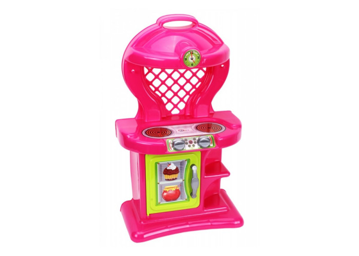 Дитяча кухня з плитою, духовкою, поличками, витяжкою. Дверці духовки відкриваються - це досить цікава дитяча іграшка. Виготовлена кухня з якісного і дуже міцного пластику. Дитяча кухня представлена однією секцією.