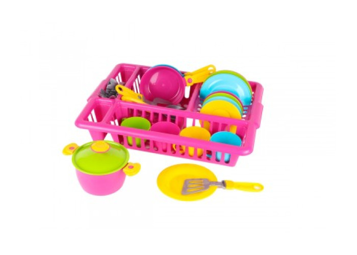 Відмінний подарунок для Вашої маленької господині – іграшковий набір посуду у сушці. Яскраві кольори сподобаються малюкам, а різноманіття посуду викличе справжнє захоплення.