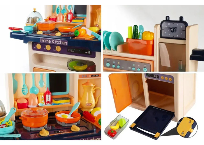 Дитяча ігрова кухня складається із 65 предметів з аксесуарами. Відмінний ігровий набір стане справжнім сюрпризом для маленької господині, дозволивши їй самостійно готувати для своїх улюблених ляльок та іграшок. Від інших наборів цю модель ігрової дитячої кухні відрізняють сім особливостей.