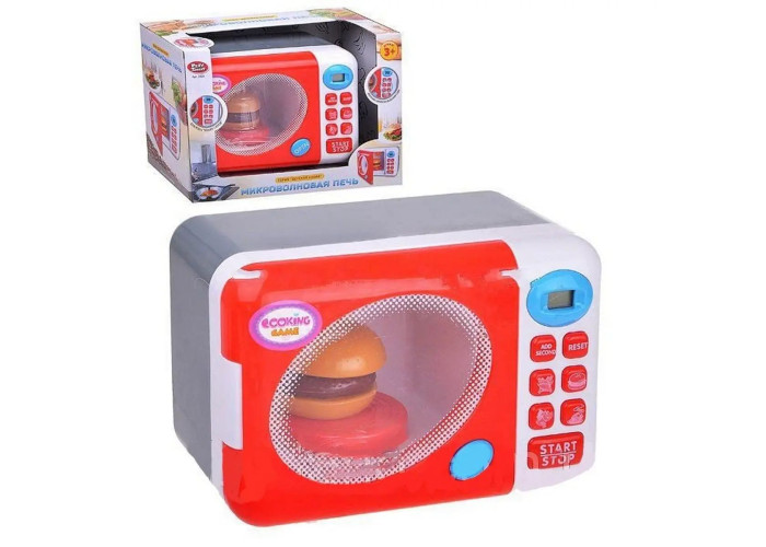 Ця іграшка дуже яскрава і реалістична, що не може не радувати дітлахів. Дверцята відчиняються, а якщо вибрати одну з кнопок і увімкнути прилад, то всередині загориться світло, і піддон буде обертатися.