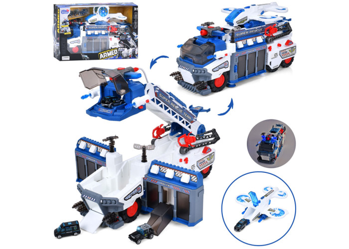 Ігровий набір машинок «Поліцейський командний пункт» YY6032P — це захоплюючий та багатофункціональний комплект для дітей, який подарує безліч годин захоплюючих ігор та розвитку фантазії. Набір включає трейлер-базу, виконану у вигляді пожежної станції, а також 3 стильні машинки і літак, які допоможуть створити повне відчуття рятувальної операції.