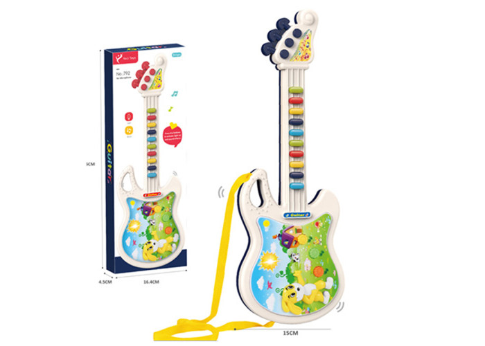 Гітара дитяча 45 см. Яскрава гітара обов'язково сподобається Вашому малюкові. Виготовлено інструмент із пластику. А яскравий дизайн не залишить жодного малюка байдужим.