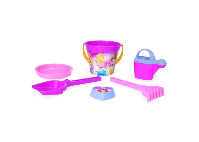 Набір для піску 6 ел. - Принцеси Disney перетворить літні ігри в пісочниці в захоплюючу пригоду. Це набір з ексклюзивної ліцензійної серії Disney від Wader. На його елементах (відерці і формочках для піску) зображені улюблені Принцеси. Картинки нанесені за сучасною технологією IML (In-Mould Labelling), яка дозволяє зробити їх виключно стійкими.