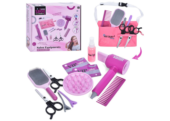 - додаткові аксесуари в наборі, як-от, шпильки, баночки, ножиці бігуді гребінці дають змогу дітям грати в перукарню;